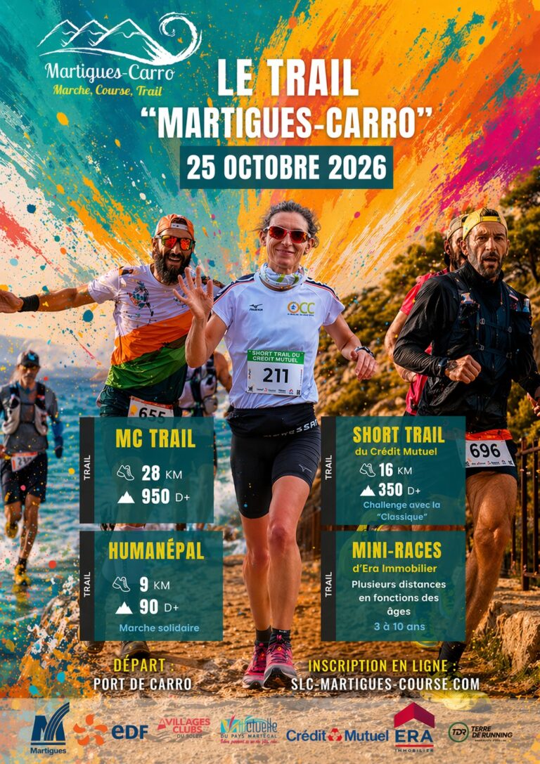 Le dimanche 25 octobre, venez découvrir notre événement phare, le Trail dissocié de « Martigues Carro », avec quatre parcours palpitants qui sauront vous défier et vous inspirer :